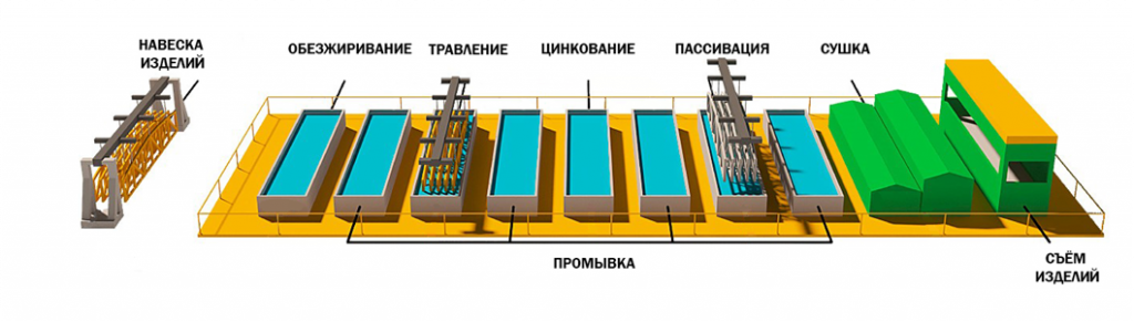 На оборудовании производится гальвaничеcкое цинкование любых металлических изделий: автозапчастей, мебельной фурнитуры, арматуры, металлических элементов, скобяных изделий и метизов, металлоконструкций, трубы и металлических пластин.